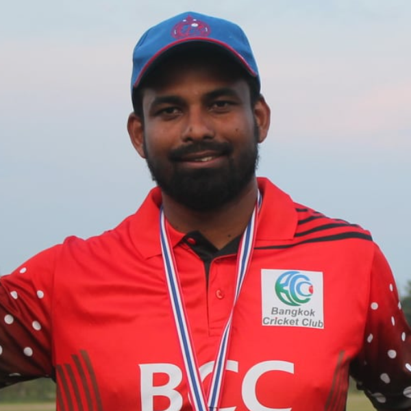 | Bangkok Cricket Club innings (25 overs maximum) | Bangkok Cricket Club innings | R | B | 4s | 6s | SR | |