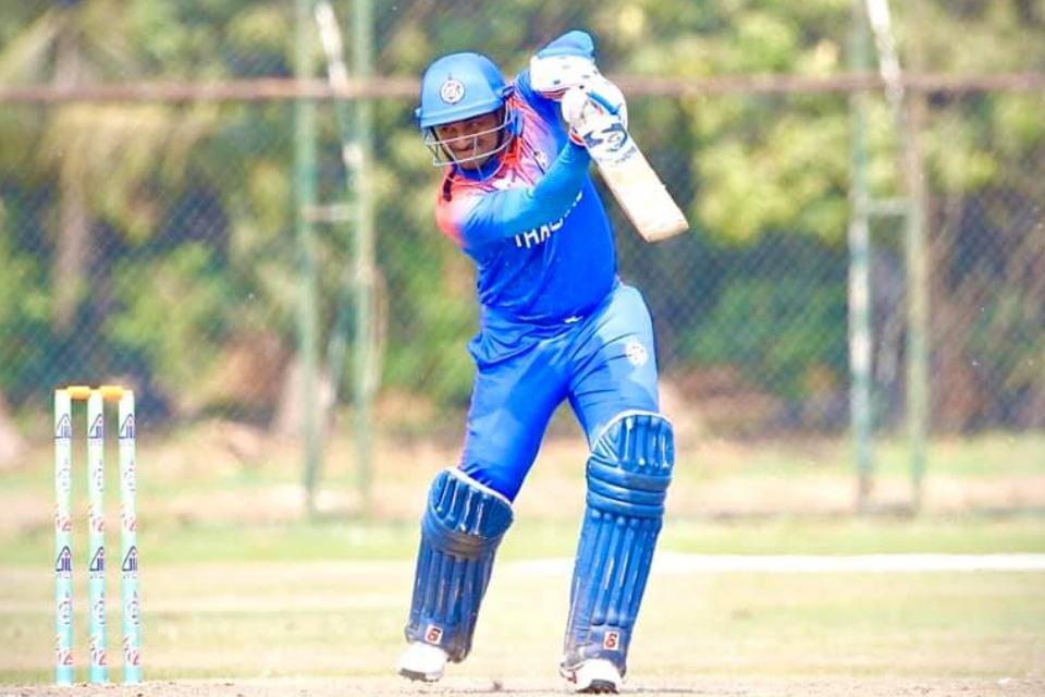 | Bangkok Blues Cricket Club innings (target: 202 runs from 25 overs) | Bangkok Blues Cricket Club innings | R | B | 4s | 6s | SR | |